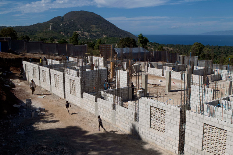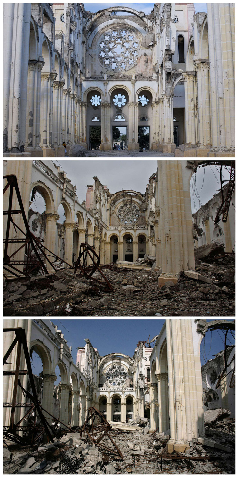 이제 거의 2년이 지났을 프르토 프랭스의 옷 가게 근처 산책거리의 복구 성과을 보여줍니다.