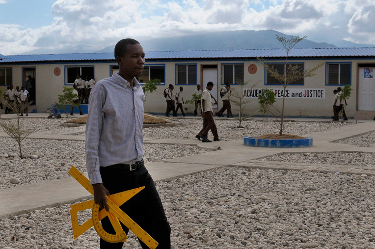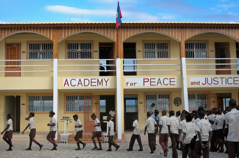 평화와 공정의 학교(APJ)는 아이티에서 처음으로 생기는 무상 중학교육 학교로, 프르토프랭스의 가장 큰 빈민가의 아이들을 수백명 입학시킴.